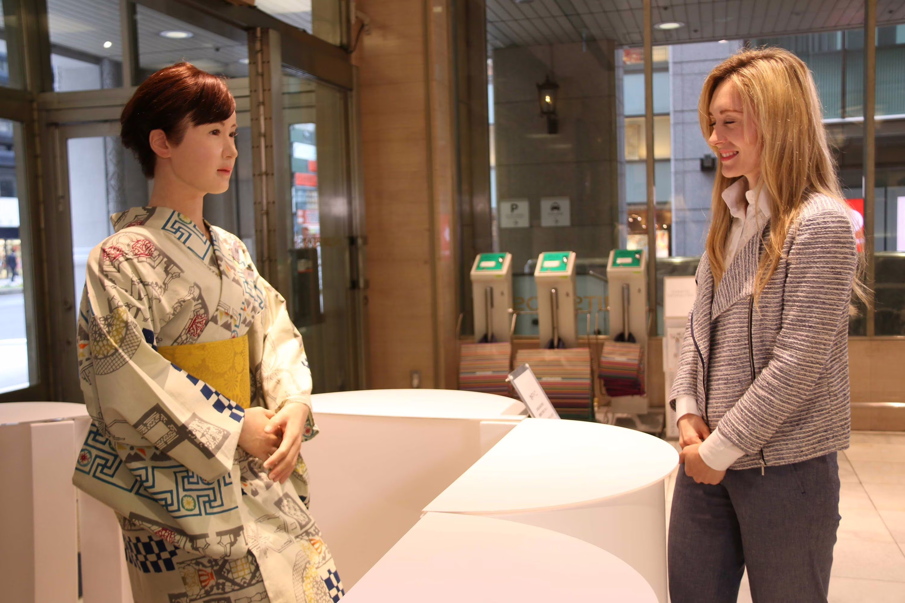 Quando i visitatori entrano nel grande magazzino Mitsukoshi di Nihombashi, il robot è pronto a salutarli in giapponese e guidarli ai diversi piani dell’edificio per individuare i prodotti che vogliono acquistare.
